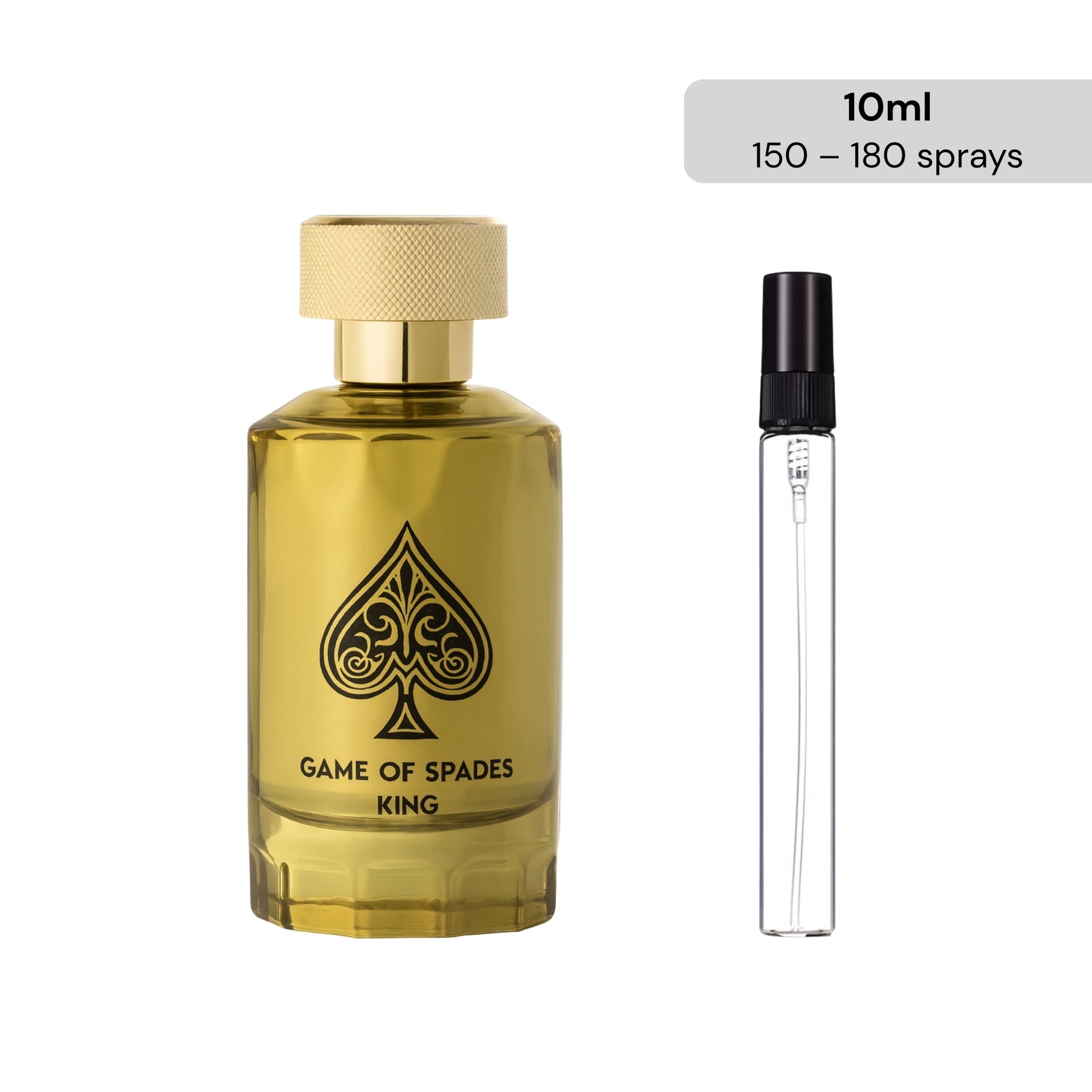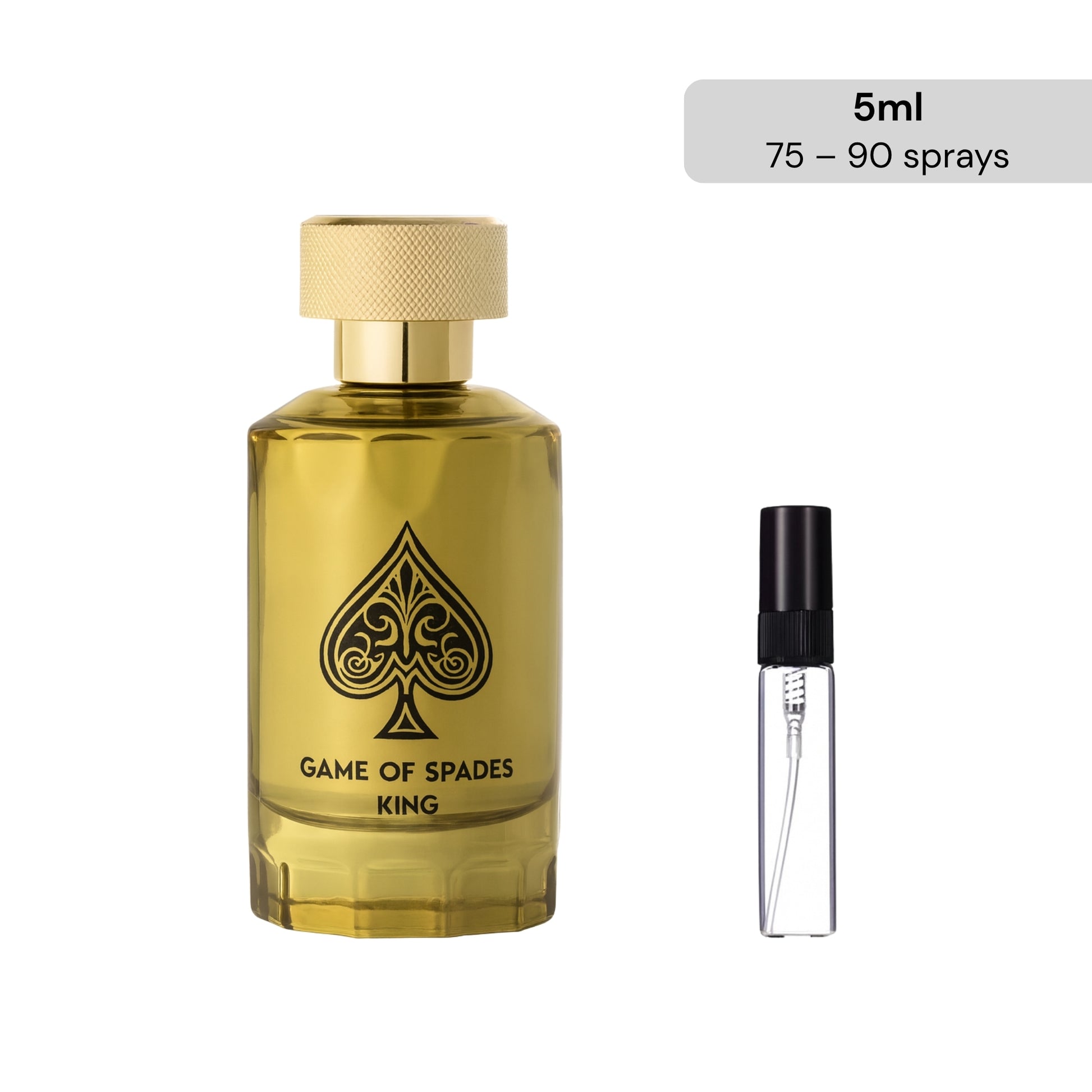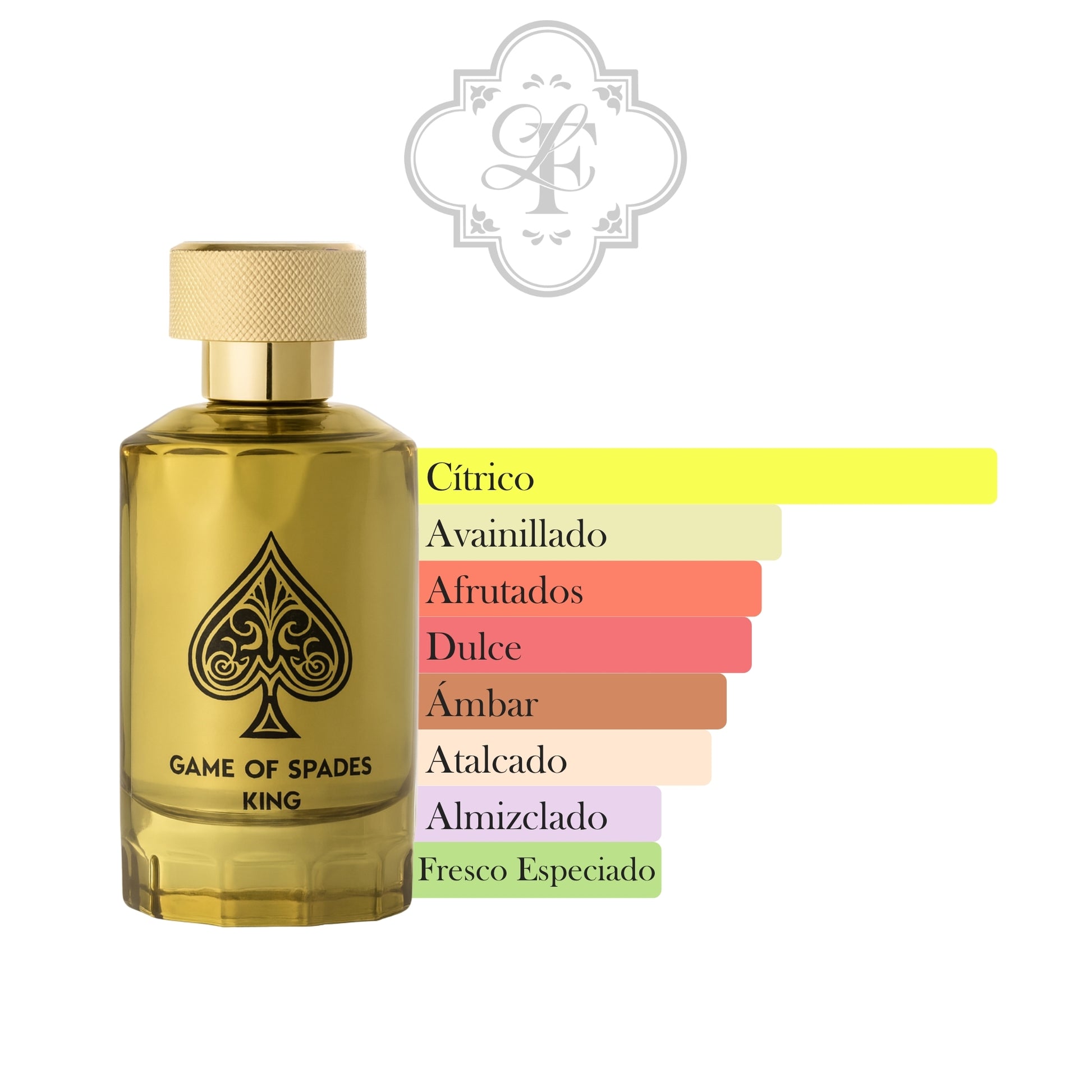 Game of Spades King de Jo Milano Paris es una fragancia de la familia olfativa para Hombres y Mujeres. Game of Spades King se lanzó en 2021. Las Notas de Salida son naranja, bergamota y limón (lima ácida); la Nota de Corazón es frutas; las Notas de Fondo son vainilla de Madagascar, ámbar y almizcle blanco.