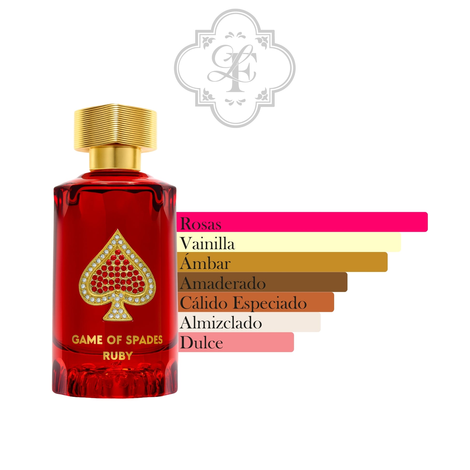 Game of Spades Rouge de Jo Milano Paris es una cautivadora fragancia unisex diseñada tanto para mujeres como para hombres. Lanzada en 2021, esta moderna fragancia encarna la elegancia y el encanto en cada rociado. Elegante y a la vez atrevida, Game of Spades Rouge es una declaración de encanto atemporal y refinada confianza.