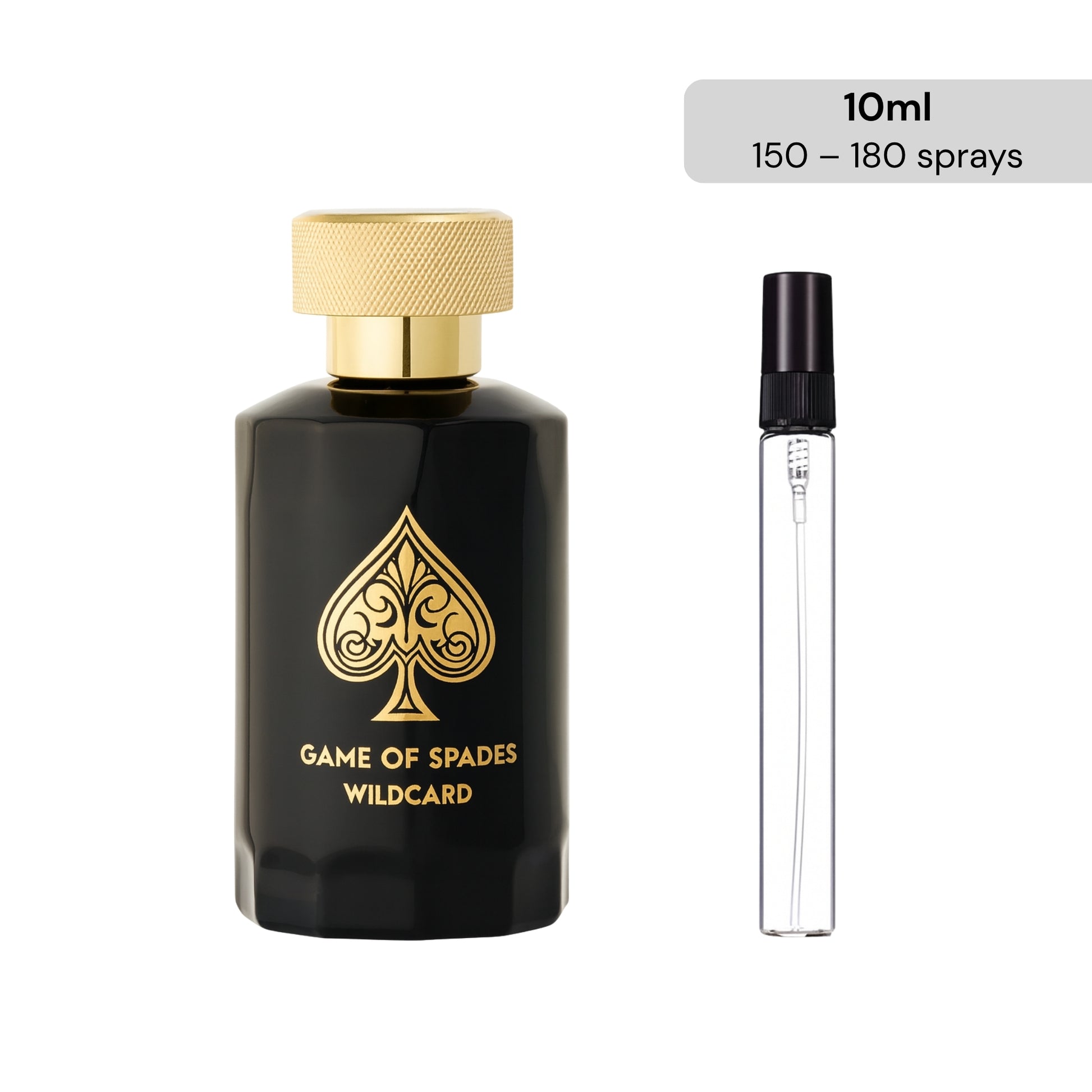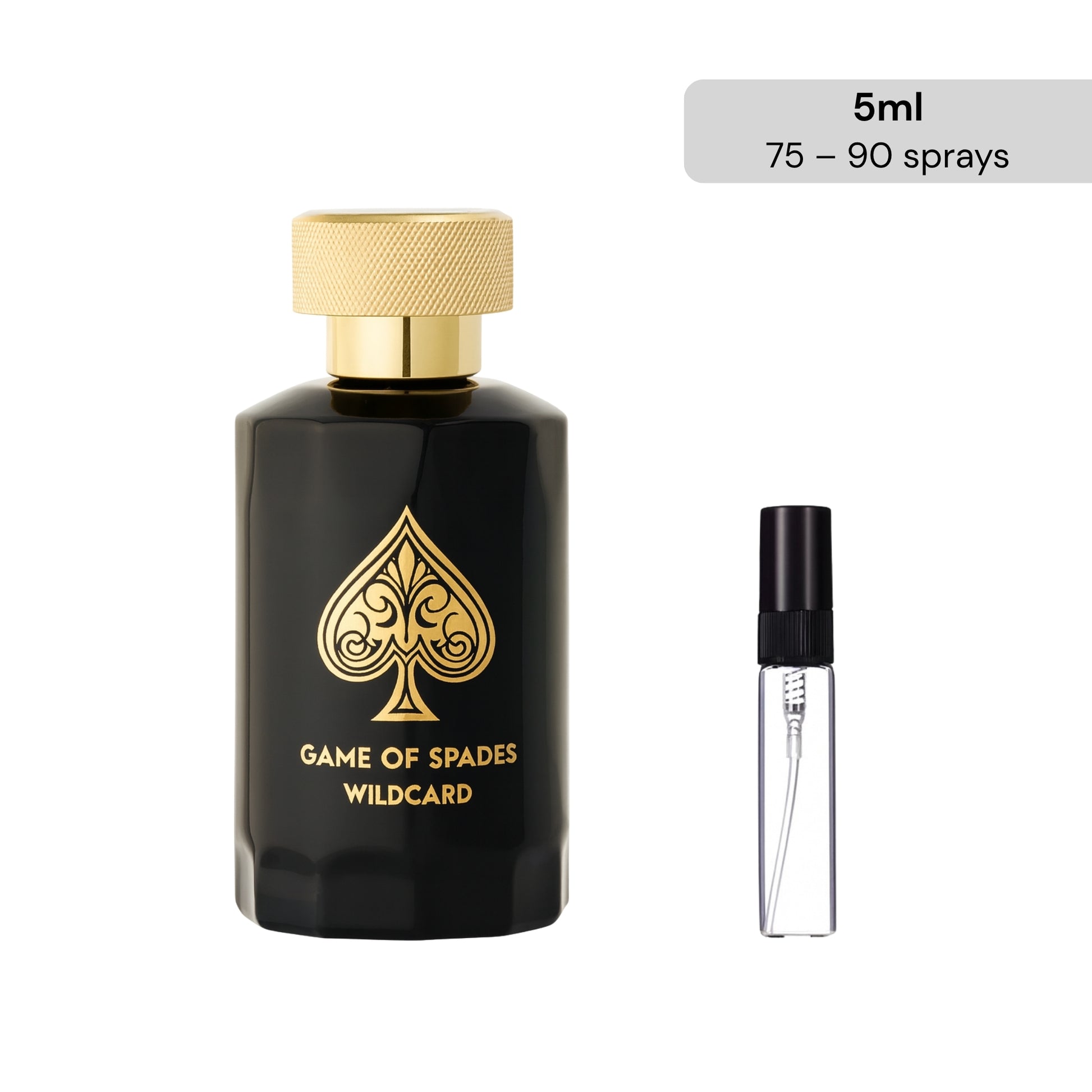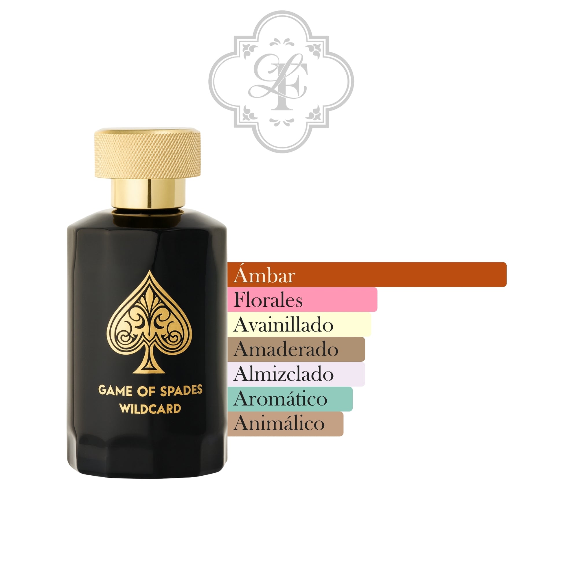 Game of Spades Wildcard de Jo Milano Paris es una fragancia de la familia olfativa Almizcle Floral Amaderado para Hombres y Mujeres. Game of Spades Wildcard se lanzó en 2022. Las Notas de Salida son flores, bergamota y cilantro; las Notas de Corazón son ambroxan, manzana y vainilla; las Notas de Fondo son notas amaderadas, ámbar gris y haba tonka.