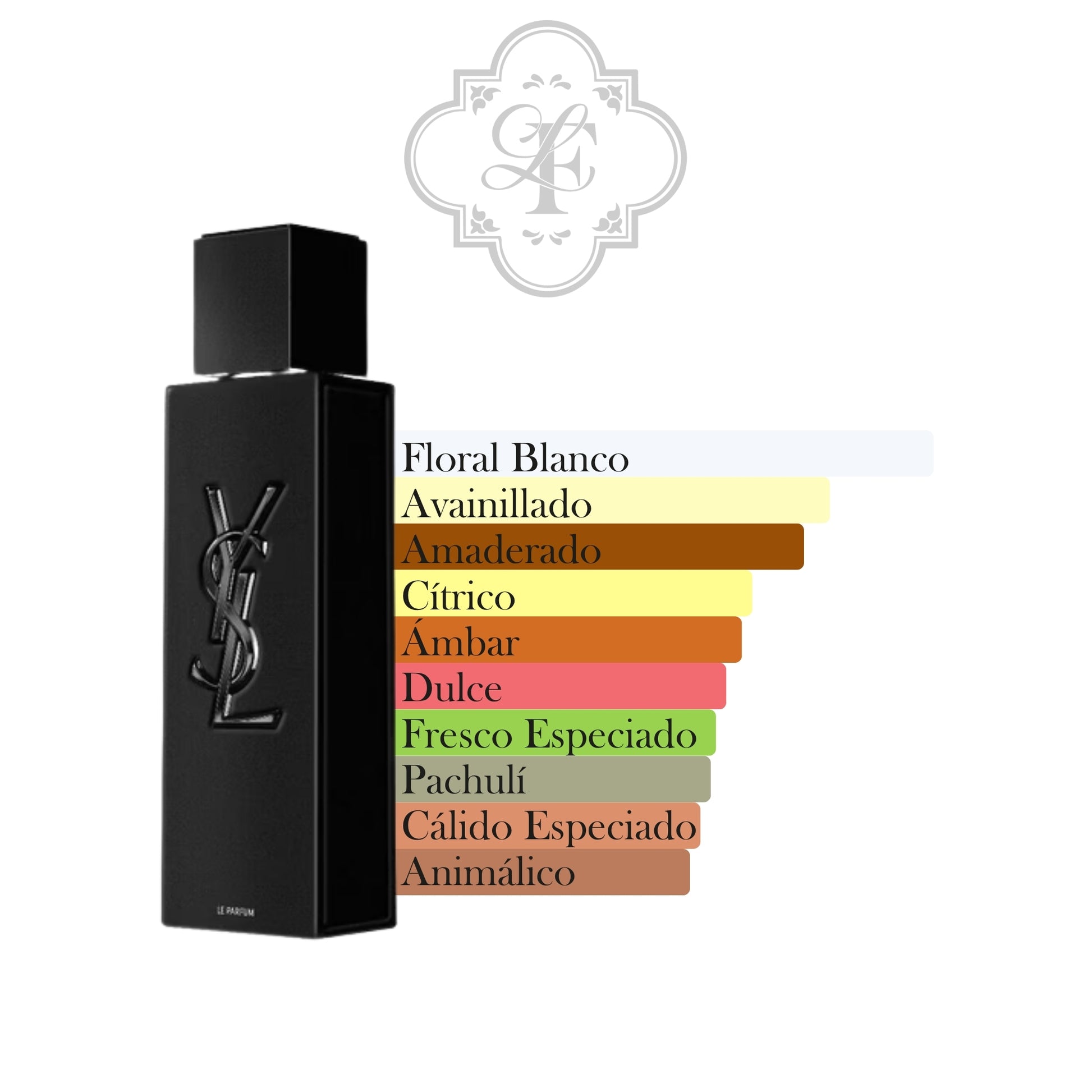MYSLF Le Parfum de Yves Saint Laurent es una fragancia de la familia olfativa Oriental Amaderada para Hombres. Esta fragrancia es nueva. MYSLF Le Parfum se lanzó en 2024. MYSLF Le Parfum fue creada por Daniela Andrier, Antoine Maisondieu y Christophe Raynaud. La Nota de Salida es pimienta negra; la Nota de Corazón es flor de azahar del naranjo; las Notas de Fondo son vainilla Bourbon, ámbar, notas amaderadas y pachulí.