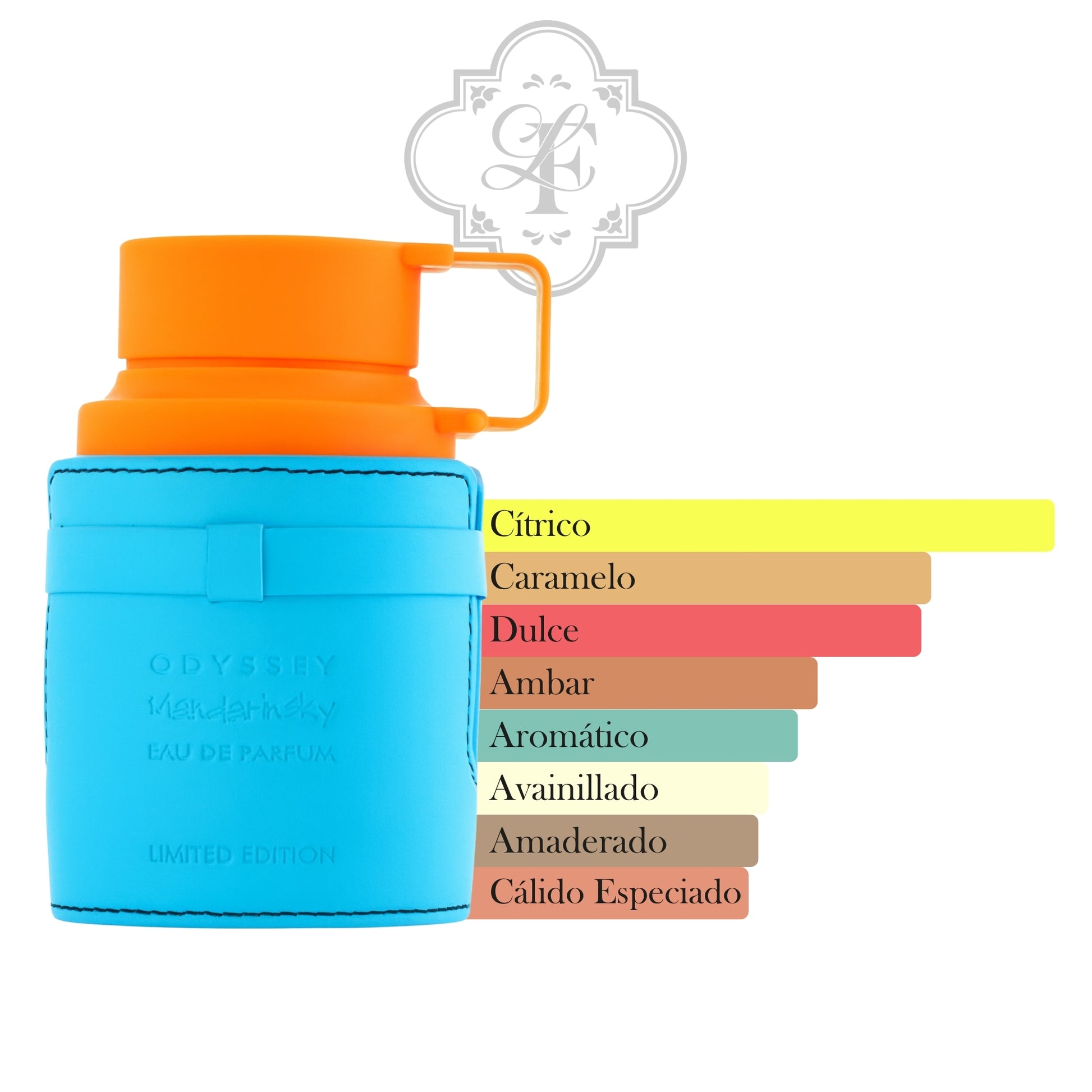 Odyssey Mandarin Sky de Armaf es una fragancia de la familia olfativa para Hombres. Esta fragrancia es nueva. Odyssey Mandarin Sky se lanzó en 2023. Las Notas de Salida son mandarina, naranja, azafrán y salvia; las Notas de Corazón son caramelo, haba tonka y cempasúchil (tagete, clavelón); las Notas de Fondo son ambroxan, cedro y vetiver.