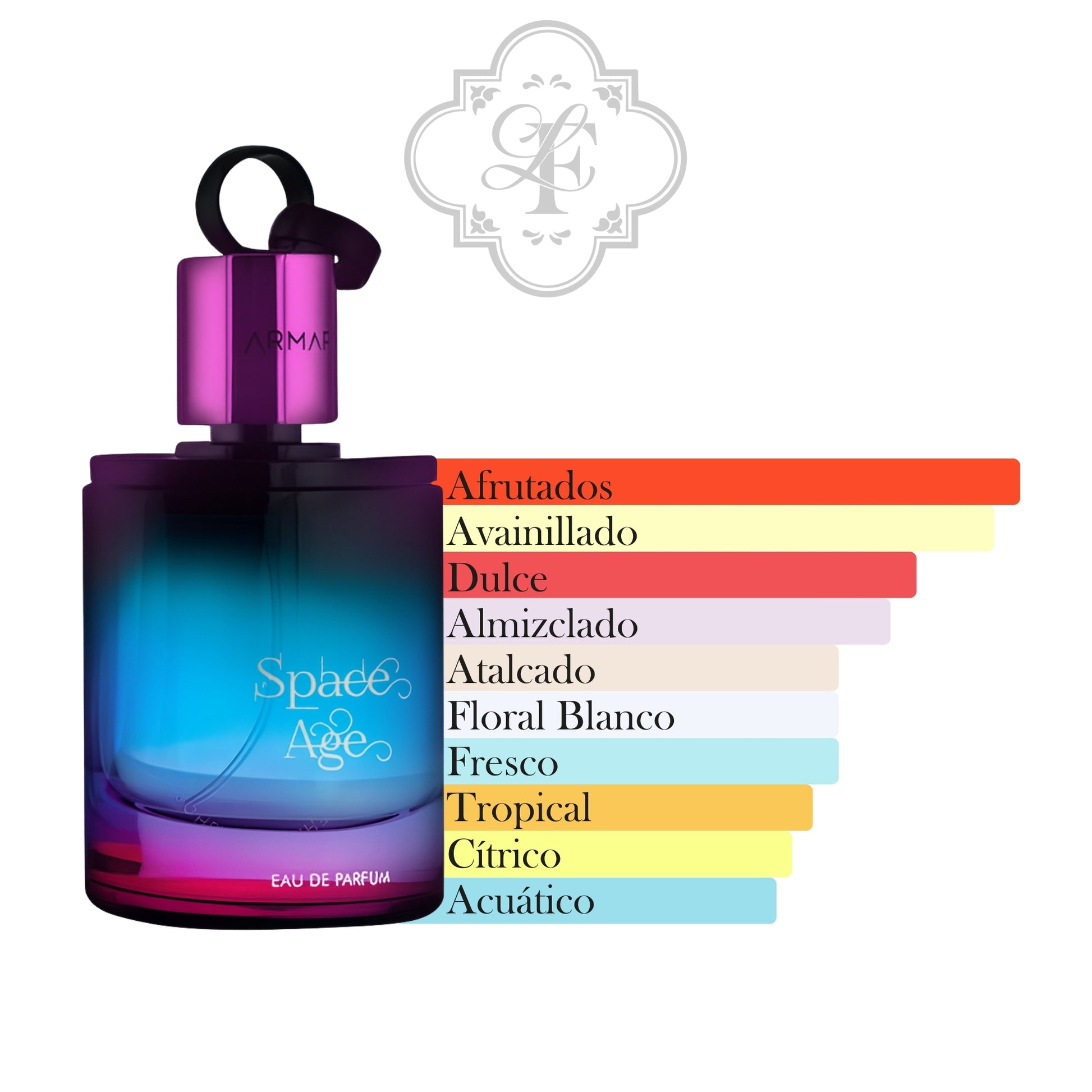 Space Age de Armaf es una fragancia de la familia olfativa Almizcle Floral Amaderado para Hombres y Mujeres. Space Age se lanzó en 2023. Las Notas de Salida son lichi, pera, bergamota, naranja y limón (lima ácida); las Notas de Corazón son jazmín y rosa; las Notas de Fondo son almizcle, vainilla, haba tonka y pachulí.