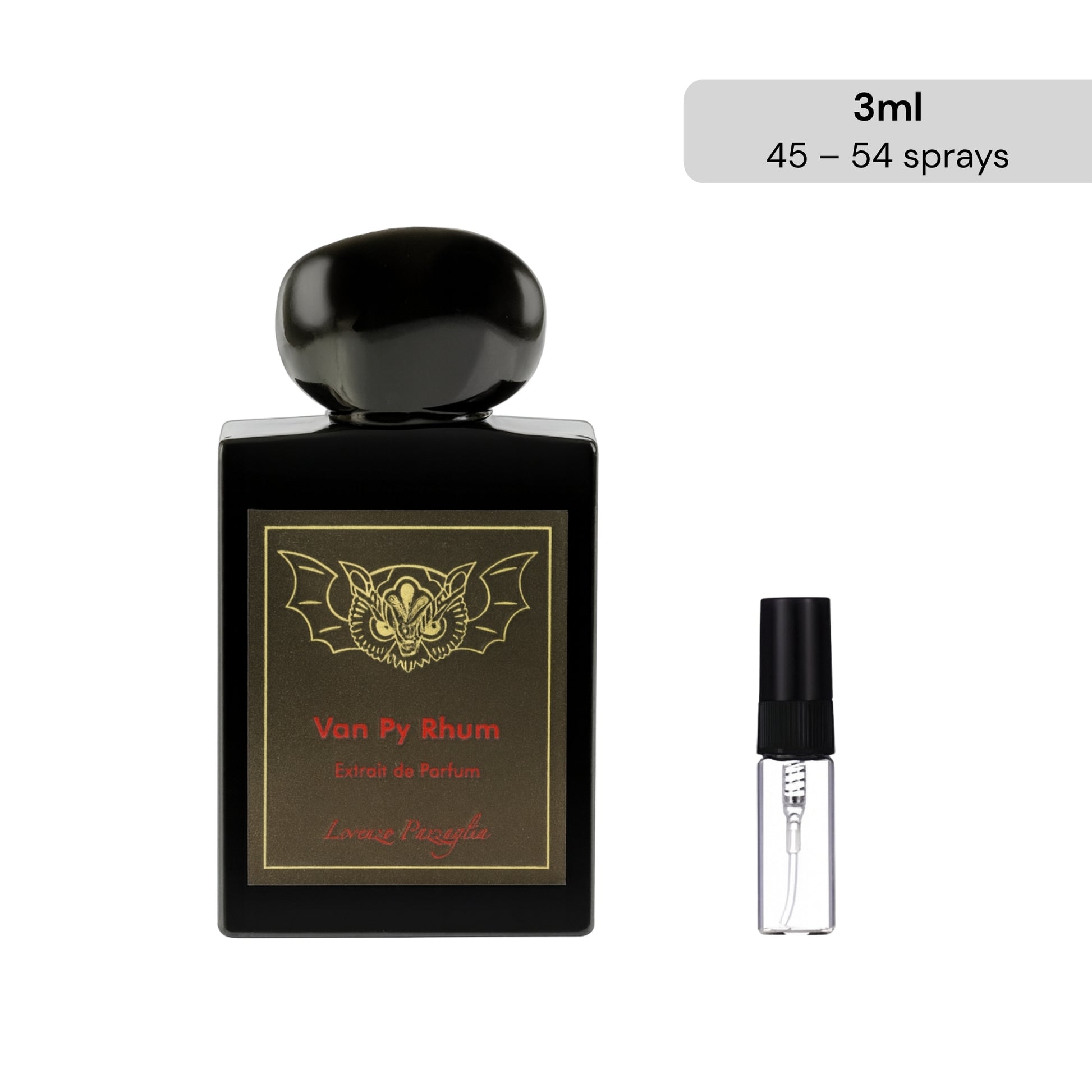 Van Py Rhum de Lorenzo Pazzaglia es una fragancia de la familia olfativa para Hombres y Mujeres. Van Py Rhum se lanzó en 2022. La Nariz detrás de esta fragrancia es Lorenzo Pazzaglia. Las Notas de Salida son vainilla Bourbon, vainilla de Madagascar, vainilla de Tahití, vainilla, ron y haba tonka; las Notas de Corazón son vainilla, caramelo, pachulí y flores blancas; las Notas de Fondo son vaina de vainilla negra, ron, hojas de pachulí de Indonesia y madera de oud.
