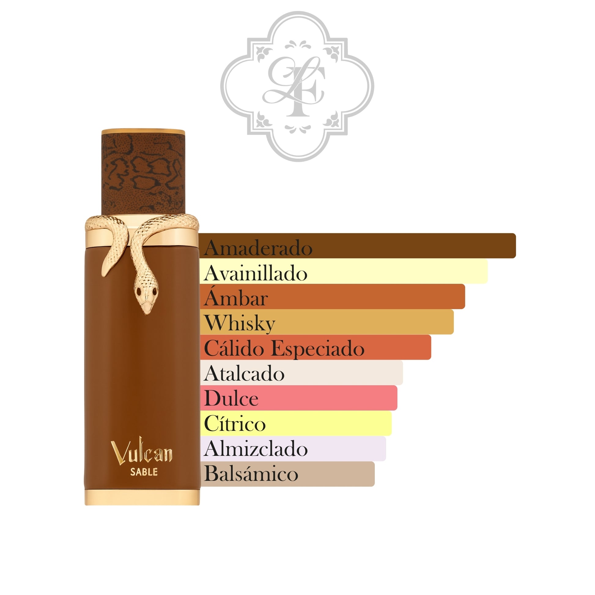 Vulcan Sable de French Avenue es una fragancia de la familia olfativa Aromática para Hombres y Mujeres. Esta fragrancia es nueva. Vulcan Sable se lanzó en 2025. Las Notas de Salida son whisky, naranja, cilantro y mandarina; las Notas de Corazón son cachemira, haba tonka, styrax y anís; las Notas de Fondo son vainilla, pachulí y benjuí.